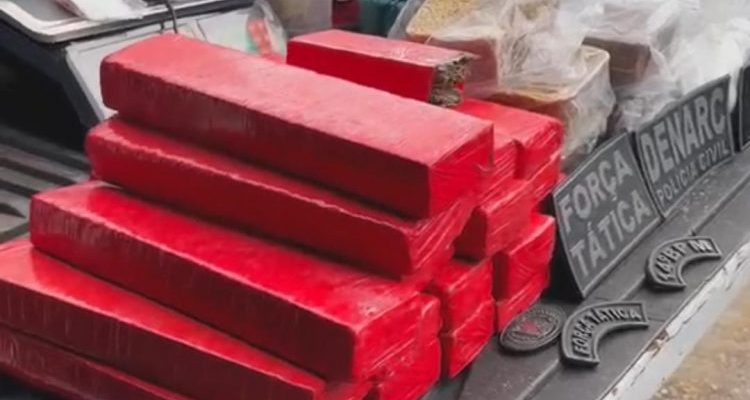 Durante a vistoria no imóvel, os policiais localizaram um ambiente estruturado para o preparo e armazenamento de drogas, com apreensão de quantidade significativa de substâncias ilícitas, além de balanças, prensa hidráulica e outros materiais utilizados na no tráfico.