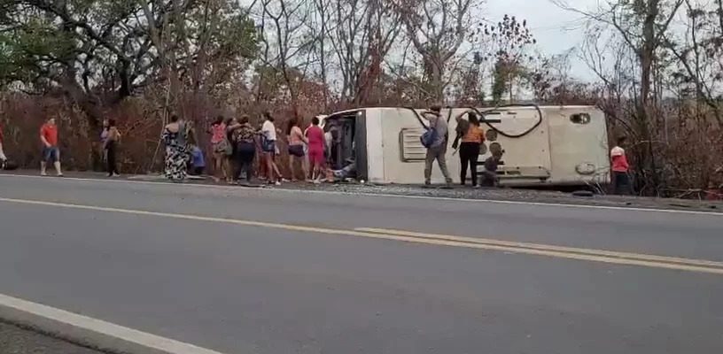Uma pessoa morreu e outras 30 ficaram feridas após um ônibus sair da pista e tombar, na manhã desta segunda-feira (22), na BR-316, no povoado Descanso, em Caxias. Entre os feridos estão crianças, gestante e idosos.