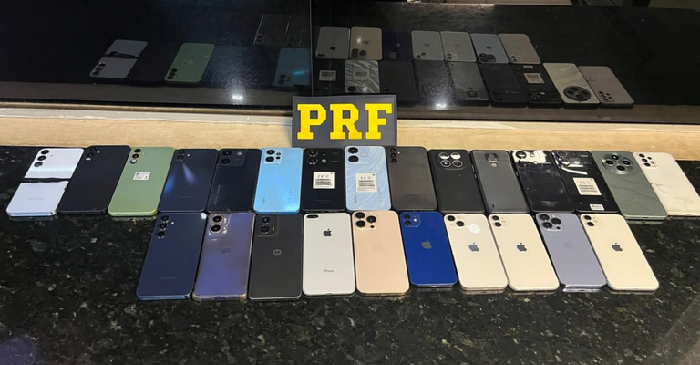 Durante a abordagem, os policiais observaram que os ocupantes demonstravam nervosismo e apresentavam informações vagas e contraditórias sobre a origem da viagem. Diante da suspeita, foi realizada busca no veículo, onde os agentes encontraram alguns aparelhos celulares no porta-luvas e o restante no interior de mochilas no porta-malas.